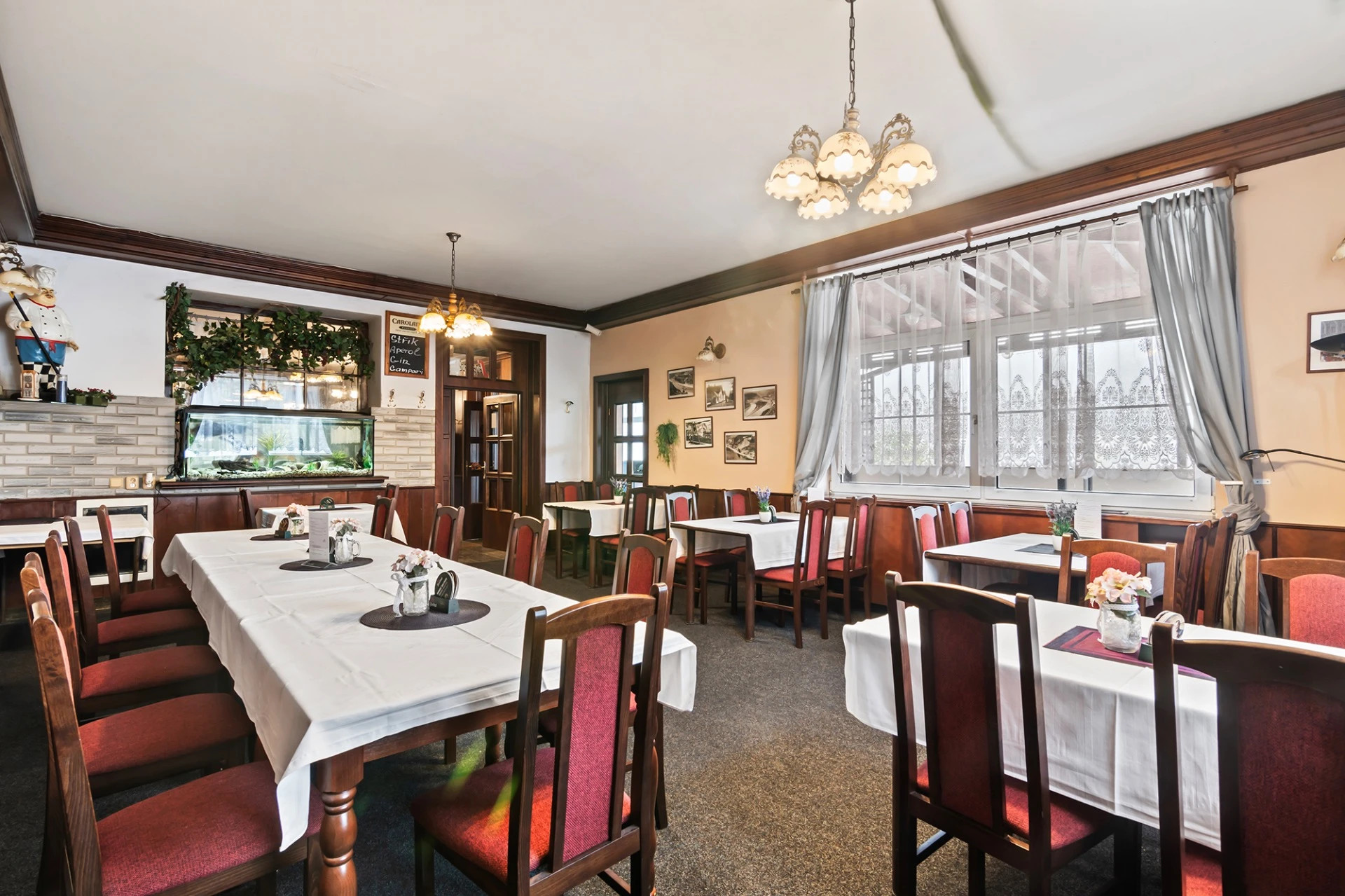 Poskytuje hostům stravování v restauraci s kapacitou 50 míst k sezení. V salonku je dalších 40 míst, který je nekuřácký.